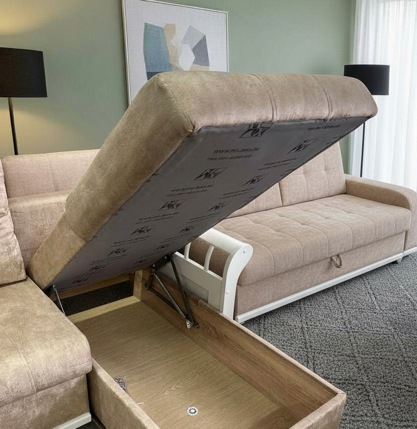Преимущества: - Современный дизайн, подходящий для любого интерьера - Просторное спальное место для ежедневного использования - Прочные и долговечные материалы - Индивидуальный выбор конфигурации и отделки